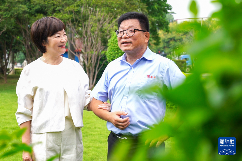 陳富澤和愛人在廠區綠地聊天。新華網 肖和勇 攝