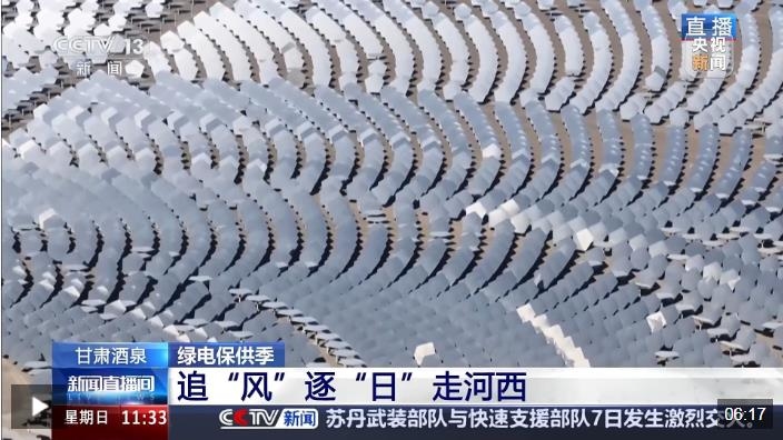 甘肅省最西端的阿克塞縣的戈壁灘上,海拔近三千米,氣溫零下15℃。在這里有一大片鏡子花園。這些大鏡子有一個專業名字叫定日鏡,它們就像開在戈壁灘上的“向日葵”,可以自由轉動,追逐太陽光。“向日葵”一共有11960個,總占地面積達到了58萬平方米,相當于81個標準足球場。