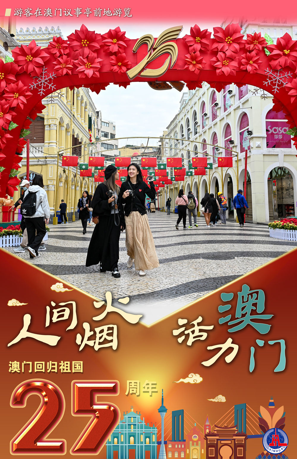 25年來,澳門經濟快速增長、民生持續改善、社會和諧穩定、國際影響力顯著提升。如今的澳門精彩紛呈,傳統融入現代,澳門的街道“充滿了活力與生機”。作為獨特的旅游目的地,澳門大型盛事、表演以及大大小小的節慶活動貫穿整年,活潑的“人間煙火氣”格外吸引游客,他們在這里品嘗全球美食、欣賞優秀藝術,一起體驗“最是動聽凡人歌”的活力澳門。