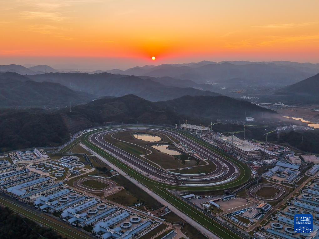 位于廣州從化良口鎮的香港賽馬會從化馬場正在進行改擴建工程(2024年12月2日攝,無人機照片)。