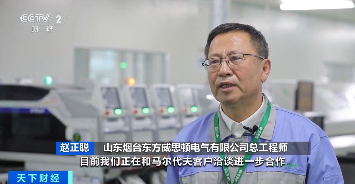 山東省是我國對馬爾代夫進出口貨值較高的省份之一。在山東煙臺的一家企業,一批即將出口到馬爾代夫的電氣設備正在生產。負責人告訴記者,馬爾代夫是他們企業近年來開拓的新市場,2024年對其出口的電氣產品貨值近千萬元。