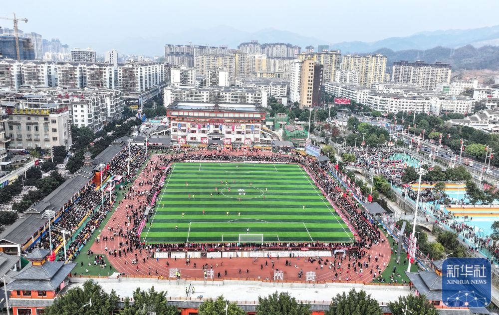 ↑這是1月4日拍攝的“村超”揭幕戰(zhàn)現(xiàn)場(無人機照片)。