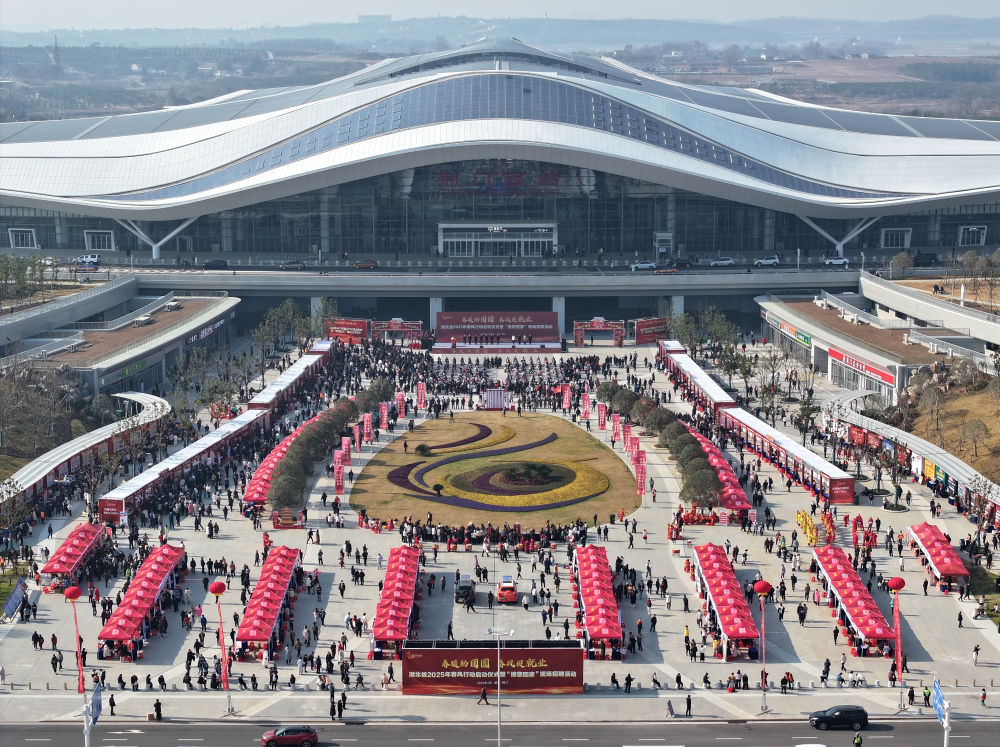 1月12日下午,湖北荊門西站東廣場前,湖北省2025年春風行動啟動儀式暨“接您回家”現場招聘活動舉行。(受訪者供圖)