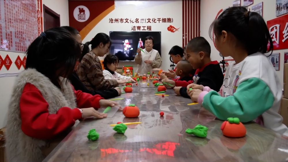 春節期間,在河北省滄州市新華區文化名家工作室,非物質文化遺產代表性傳承人張英英為附近居民傳授捏面人技藝。