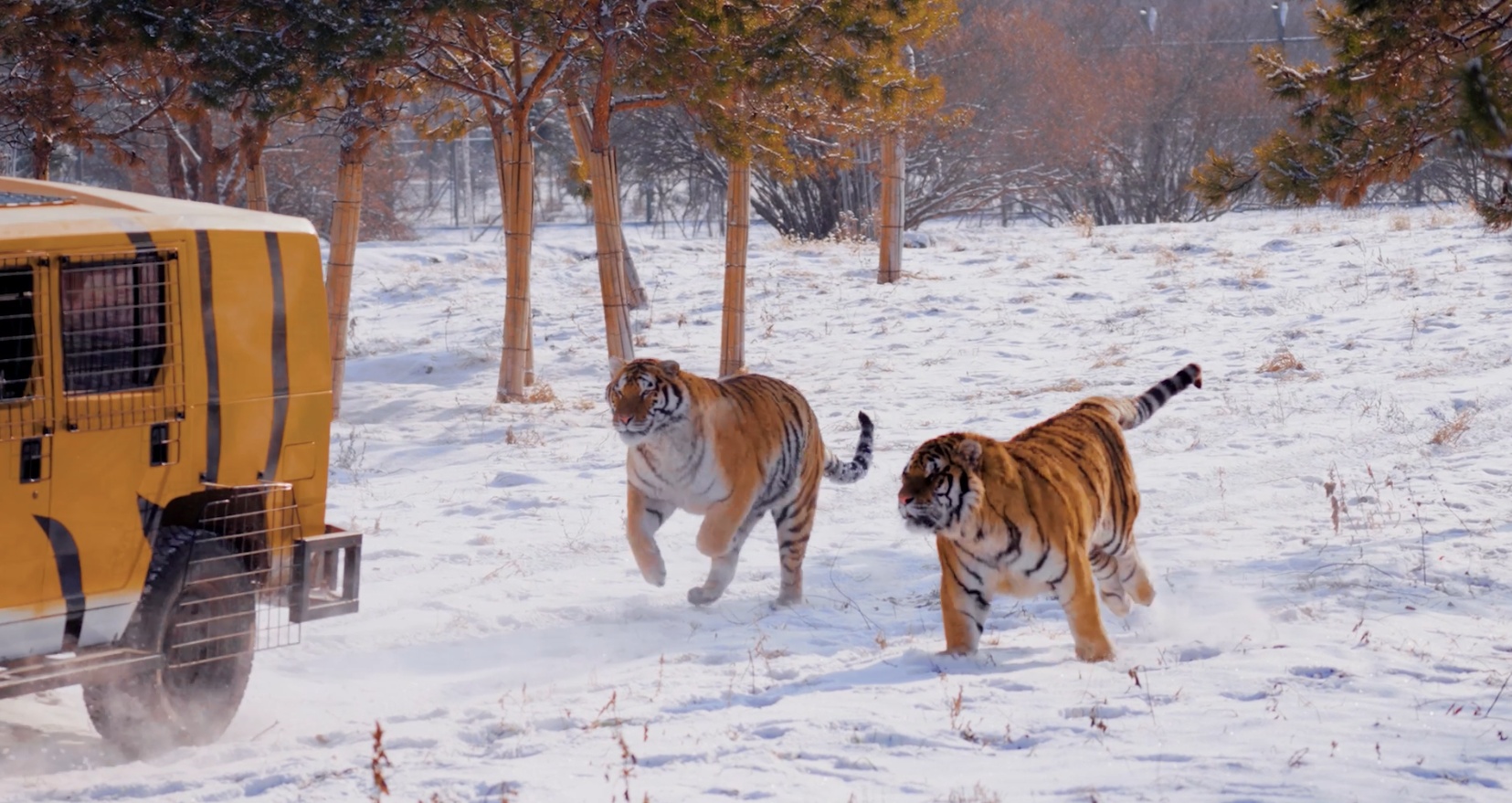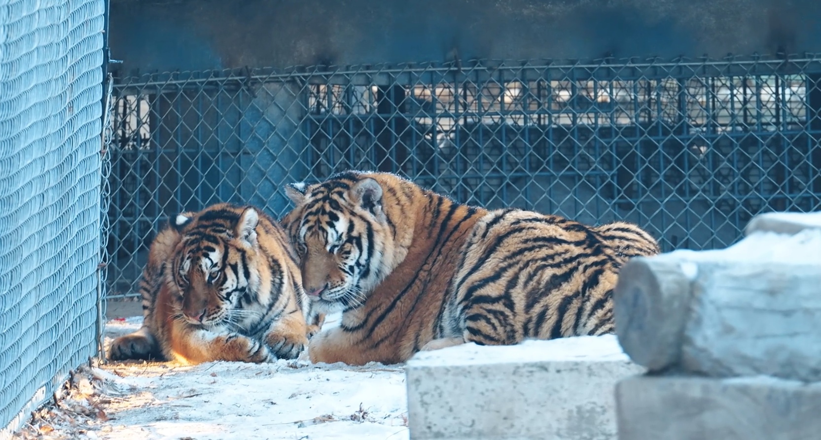 飼養員 楊忠亮:它們兩個現在是在一歲多快到一歲半了,體重也能達到150多斤以上了。我們給它提供了一個比較大的活動場地,讓它們能活動得比較開闊,能更好的與游客去見面。這個年齡段也是非常愛打愛斗愛鬧的年齡。游客隨時來到我們東北虎林園,也會隨時的看到它們和游客很好的一個互動。
