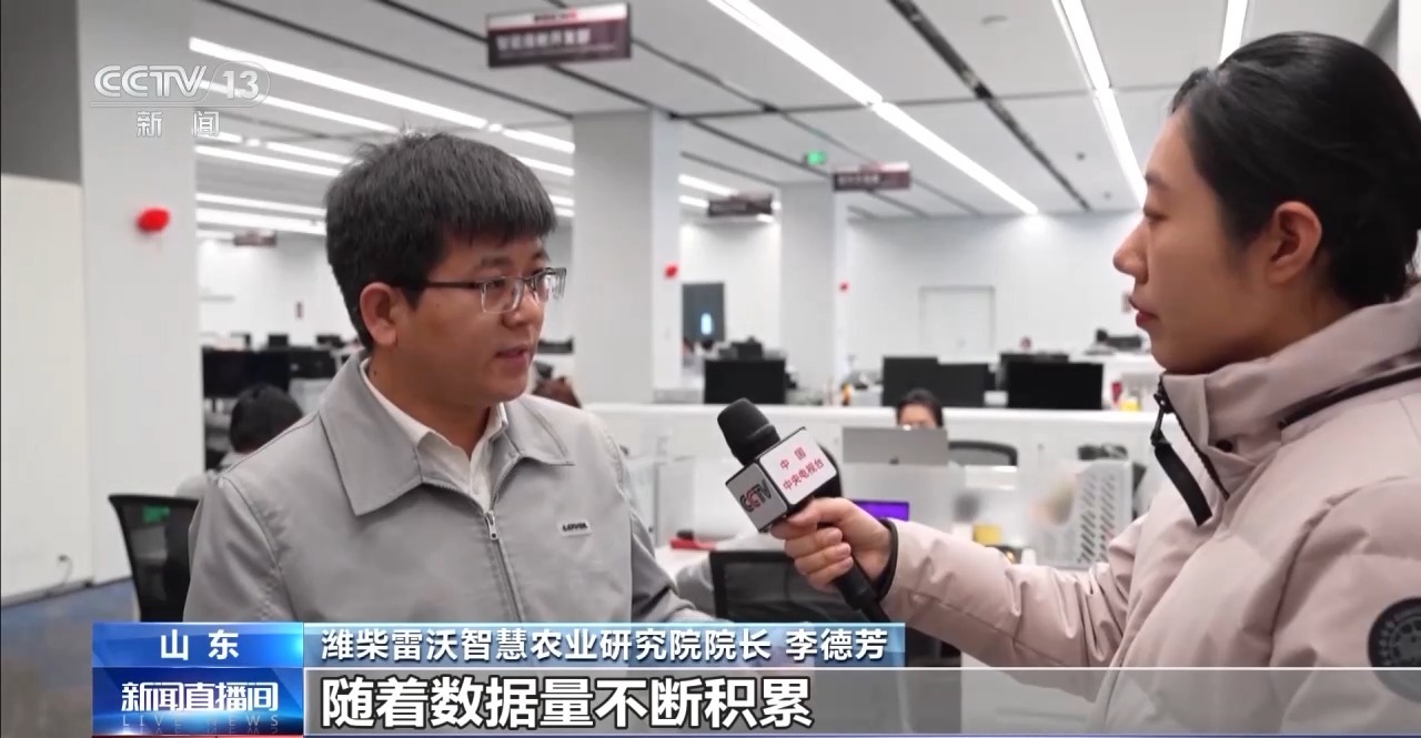 濰柴雷沃智慧農業研究院院長 李德芳:實際上農機變成了一個可移動的智能終端,它上面搭載了各種傳感器,作業過程中去采集各種作業的信息,這些數據到了(AI)模型去做一個融合,這樣的話幫助農機作業更精準。