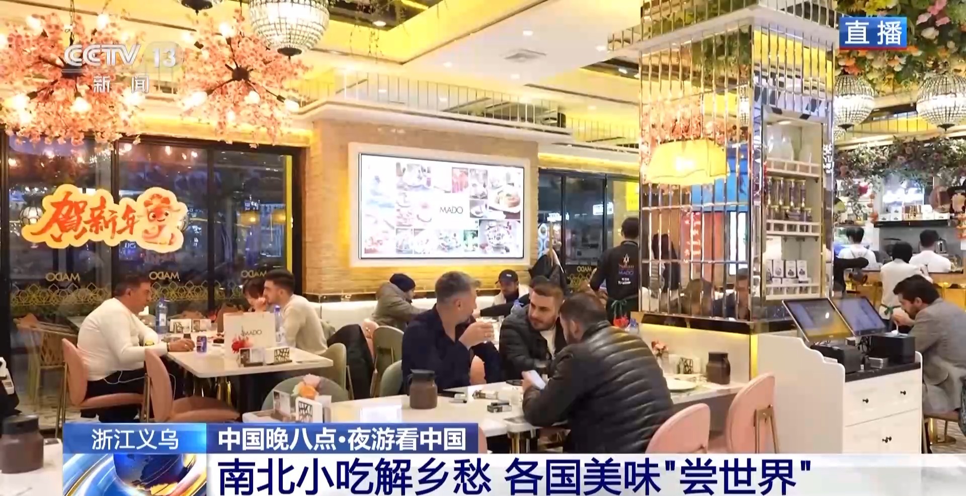 此外,馬路另一側,還能品嘗世界美味,來自世界各地的大廚,直接把餐館開到了義烏,讓你無需搭乘飛機就能嘗到異國風味。在這里不僅能夠聽到天南海北的口音,還能看到不少外國游客也一起“逛吃逛吃”,在這一刻,美食或許就是“通用語言”。
