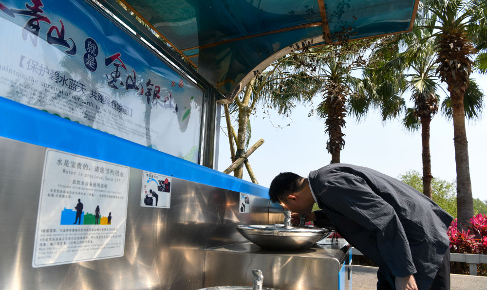 這是在博鰲零碳示范區內的塑料再生流程科普展臺上,工作人員演示塑料再生流程(3月25日攝)。