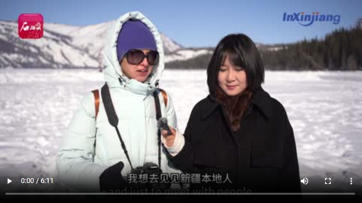 受邀做客本期《InXinjiang》欄目訪談的,是來自白俄羅斯的記者瑪麗娜。這是她第二次到新疆,走在喀納斯湖冰面上,她被眼前的美景和當地豐富多彩的文化活動深深吸引。瑪麗娜難掩內心歡喜:“現代化基礎設施與自然美景相得益彰,這是我喜歡新疆的理由。”