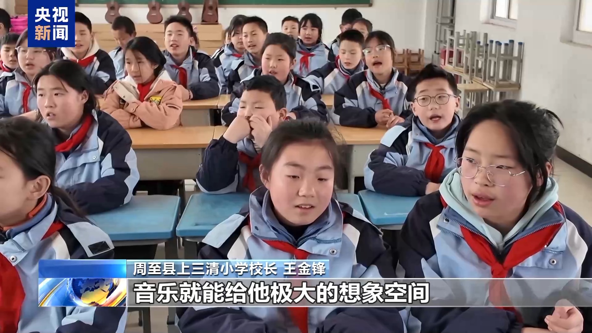 周至縣上三清小學校長 王金鋒:農村學校大多是留守兒童,爸爸媽媽都在外面打工,爺爺奶奶在家里看護這些孩子,隔代教育。音樂就能給他極大的想象空間還有發(fā)展空間。孩子們首先對自我有一個認知、提升,他覺得自己可以很自然地站到大家面前去展示自己的才藝。