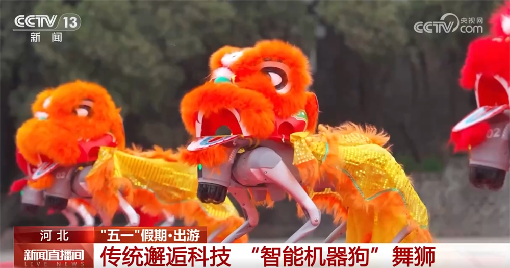 5月1日,在老龍頭景區,醒獅技藝與智能機器狗的互動表演《智舞雄獅》吸引了大批游客駐足、參與,4臺搭載智能交互系統的機器獅與醒獅隊同臺獻藝,現場游人沉浸式體驗“長城+科技”的文旅新產品。
