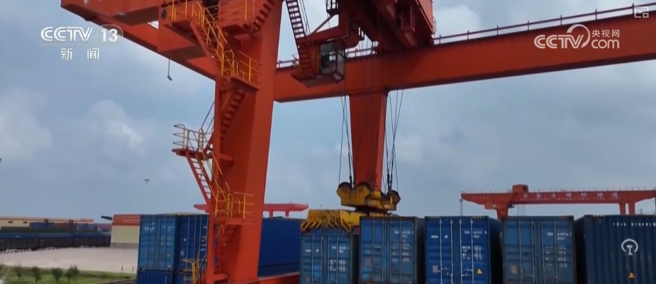 走進石家莊國際陸港園區,外貿企業的中轉庫房忙碌有序,大型貨車在中鐵特貨商品車分撥中心穿梭作業。龍門吊則將貨物精準吊裝至中歐班列車廂,為發車做準備。