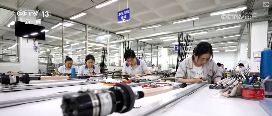 山東威海的釣具早已蜚聲海外,這里聚集了近5000家釣具生產及貿易企業,包攬了全球六成魚竿市場份額。在這家規模較大的生產企業里,碳纖維魚竿從自動流水線魚貫而下,即將發往歐洲市場。2025年以來,企業出口額達2.1億元,同比增長27%。
