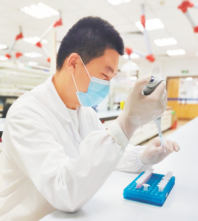 聶龍宇在提取細胞核酸標本。東陽光藥業供圖