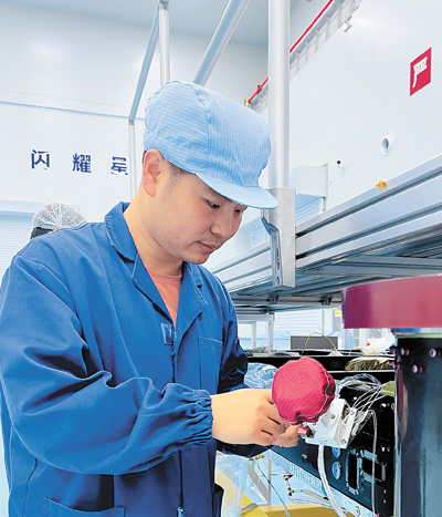 郭帥在檢查衛星敏感器的連接部件。微納星空公司供圖