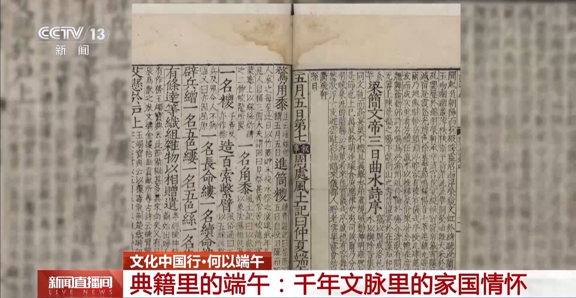 端午節(jié)是我國首個入選世界非物質(zhì)文化遺產(chǎn)的節(jié)日,既有獨特的自然物候特征,又有深厚的民族文化內(nèi)涵。從典籍里,我們?nèi)テ纷x端午,更能感受這種延續(xù)千年的自然風貌和跨越古今的家國情懷。