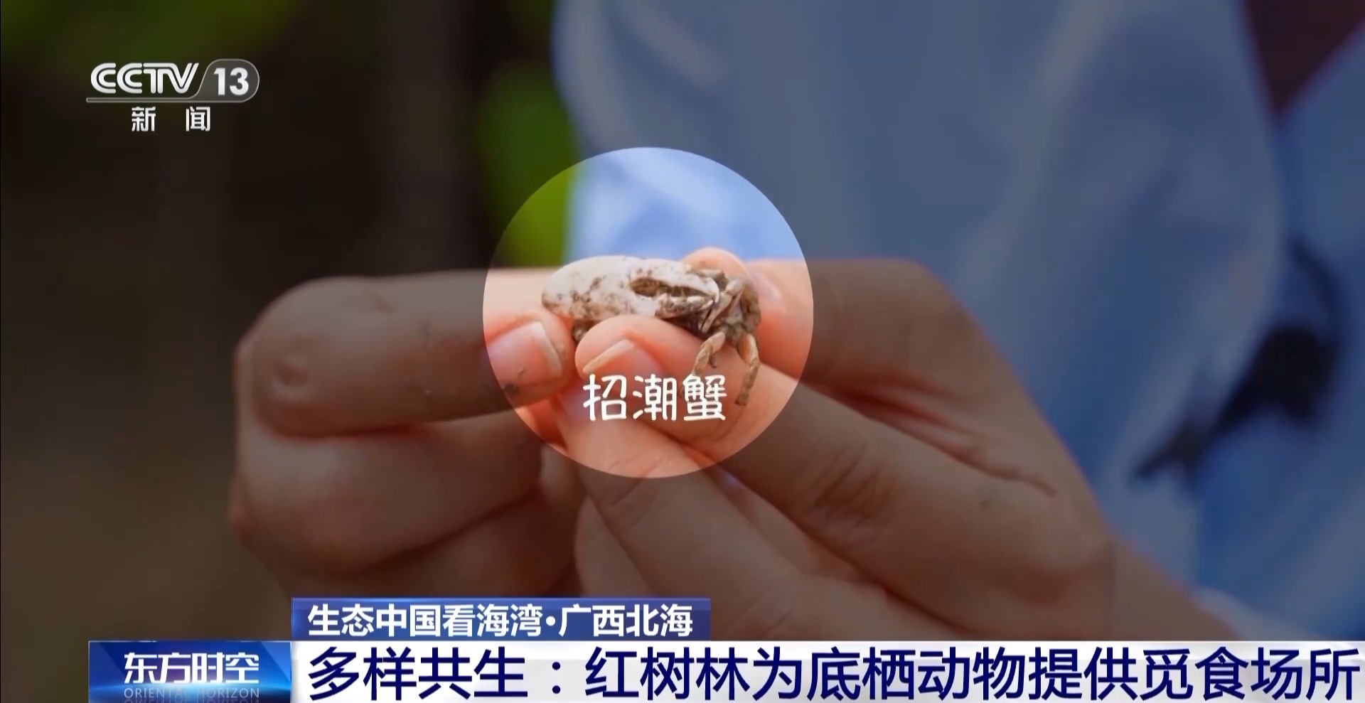 總臺(tái)記者 王潔:我手上就有兩只非常可愛(ài)的蟹類,非常小巧玲瓏,很可愛(ài)活潑,叫擬相手蟹,喜歡爬樹(shù)。灰白色的是雌蟹,雄蟹則是個(gè)更大而且全身通紅,更加威風(fēng)凜凜,它們叫“招潮蟹”。