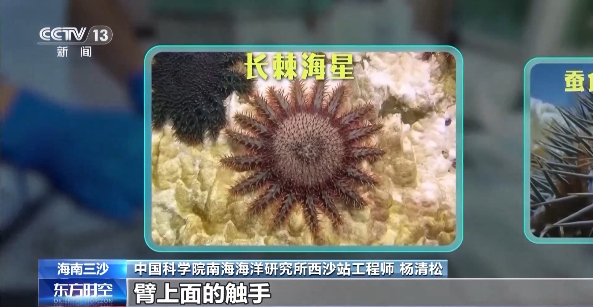 中國(guó)科學(xué)院南海海洋研究所西沙站工程師 楊清松:這個(gè)海星有十幾只臂,臂上面的觸手,它會(huì)伸出來(lái),它把它的胃整個(gè)排出來(lái),把珊瑚包裹住,把整個(gè)珊瑚的組織給消化掉,只剩骨骼了,這個(gè)跟珊瑚白化不一樣,吃掉就沒(méi)辦法了。