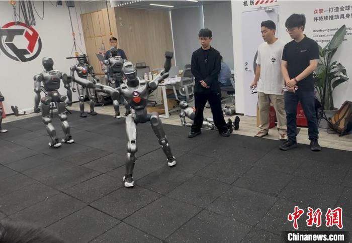 6月25日,深圳市眾擎機器人科技有限公司的人形機器人PM01跳起舞蹈。中新社記者 程景偉 攝