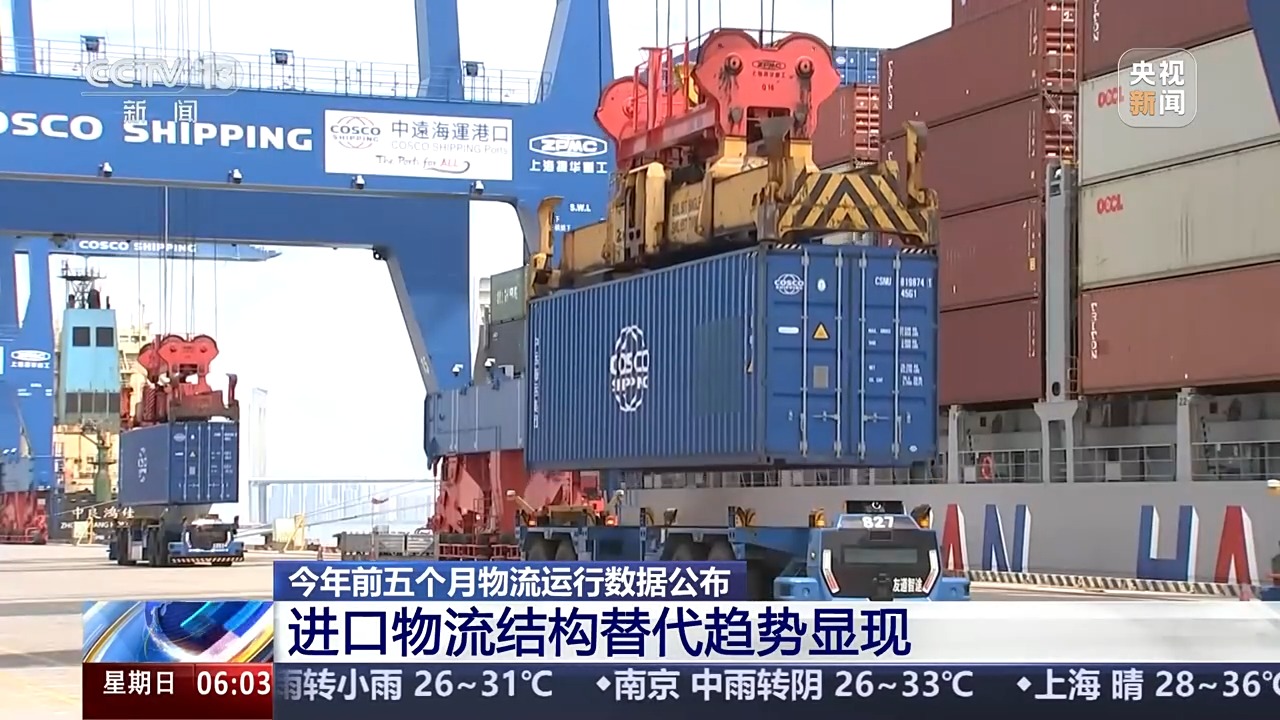 從進口物流來看,受外部不確定因素影響,1—5月份進口物流總額環比繼續下降,但結構分化態勢持續,替代趨勢開始顯現。