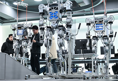 湖北省組織省內多所高校、科研院所、企業(yè)進行科研攻關。圖為武漢格藍若智能技術股份有限公司研發(fā)團隊成員在調試人形機器人。新華社發(fā)