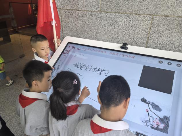 參觀完紀念館后,孩子們在電子留言版上留言(王莉莉/攝)
