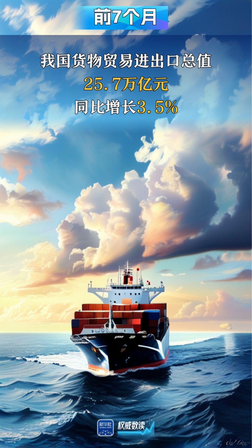 海關總署7日發布數據顯示,今年前7個月,我國貨物貿易進出口總值25.7萬億元人民幣,同比增長3.5%。面對復雜外部環境,我國外貿運行保持向上向好勢頭,經濟運行穩中有進。