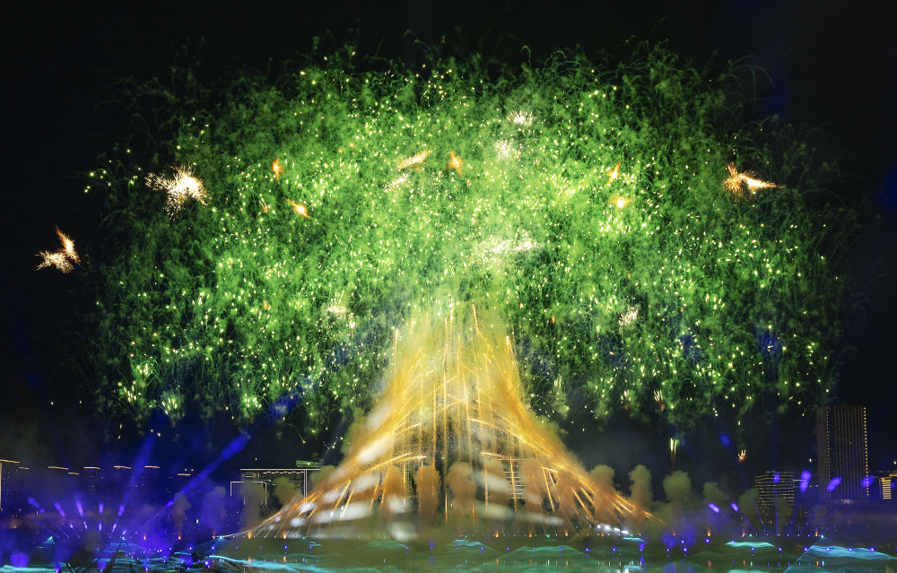 開幕式上,每個(gè)環(huán)節(jié)都融入文化巧思。繽紛的焰火在夜空綻放,篆書“成都”兩字源于距今兩千多年的青銅兵器,開滿“鴿子花”的“友誼之樹”以成都金沙遺址大樹根遺跡和“植物活化石”桐樹為創(chuàng)意靈感。
