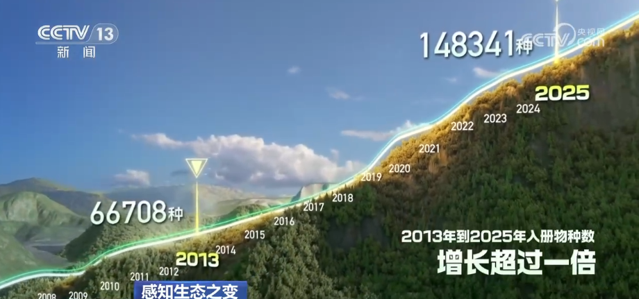 如今,《中國生物物種名錄》上“入冊”的生物種數(shù),從2013年的6.7萬種增長到2025年的14.8萬種,增長超過一倍。近500種野生動植物的受威脅等級出現(xiàn)下降。
