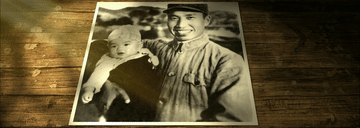 這是左權將軍懷抱著女兒,父女臉上露出微笑的動態老照片。