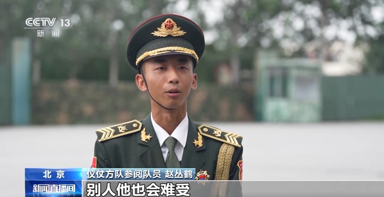 儀仗方隊受閱隊員 趙叢鶴:其實當你難受的時候,別人他也會難受,像這個時候我們比拼的就不是身體素質了,我們比拼的是意志力。