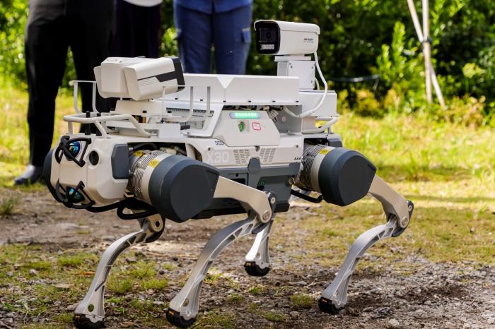 從“地面偵察兵”機械狗,到“無形劍客”激光清障儀,各種新技術齊登場。一方面,機械狗以其靈活性而著稱,可爬坡、越障,代替傳統巡檢人員實現園區全角落全覆蓋,并將錄制的高清視頻實時傳回后臺,為工作人員提供技術分析數據支撐;另一方面,激光清障儀可利用其高度集中的光能,隔空切斷樹枝,確保在不停電、不爬高的前提下,安全清理威脅園區電網安全的樹障。