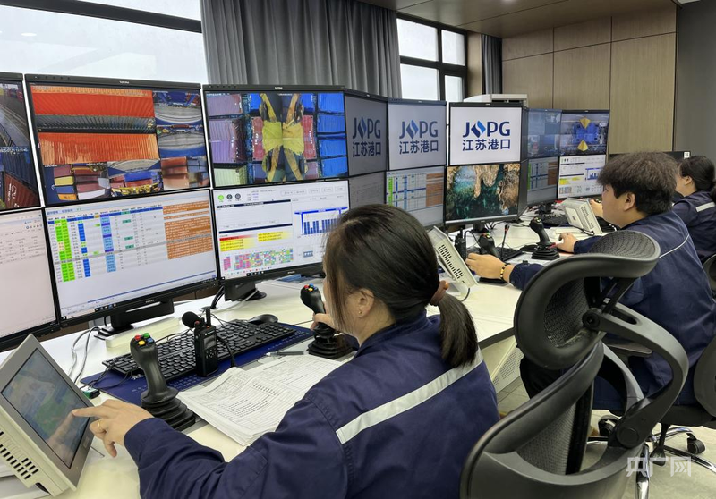南京港龍潭集裝箱有限公司總經理段昌尉介紹,“工作人員在幾公里外的辦公大樓里利用‘智慧大腦’遠程操作。龍潭港區平均每天有40余艘集裝箱船停靠,自從有了‘智慧大腦’,一個工作人員就能同時操作4到5臺軌道吊,效率實現倍增。”