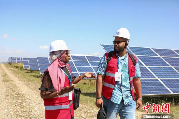 2025年9月12日,第九屆中非青年大聯歡代表團和非洲記者團一行來到青海省一光伏產業園區,實地了解青海清潔能源發展。中新社記者 馬銘言 攝
