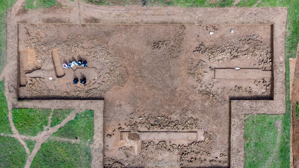 2024年夏季,考古工作人員在遺址西側第二與第三組門塾建筑之間,發現了一處由兩個對稱闕臺基址構成的早期闕門遺跡。