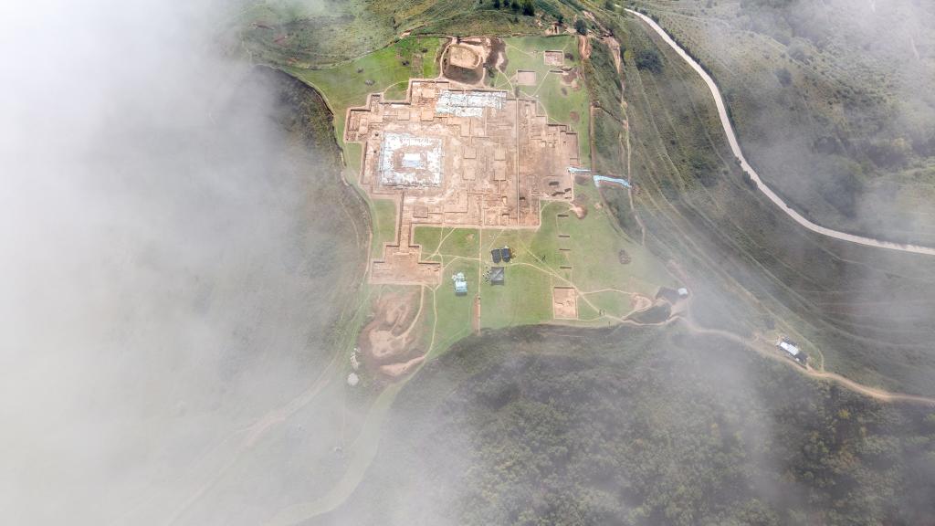 這是10月15日拍攝的甘肅省隴南市禮縣四角坪遺址考古發掘現場(無人機照片)。新華社記者 陳斌 攝