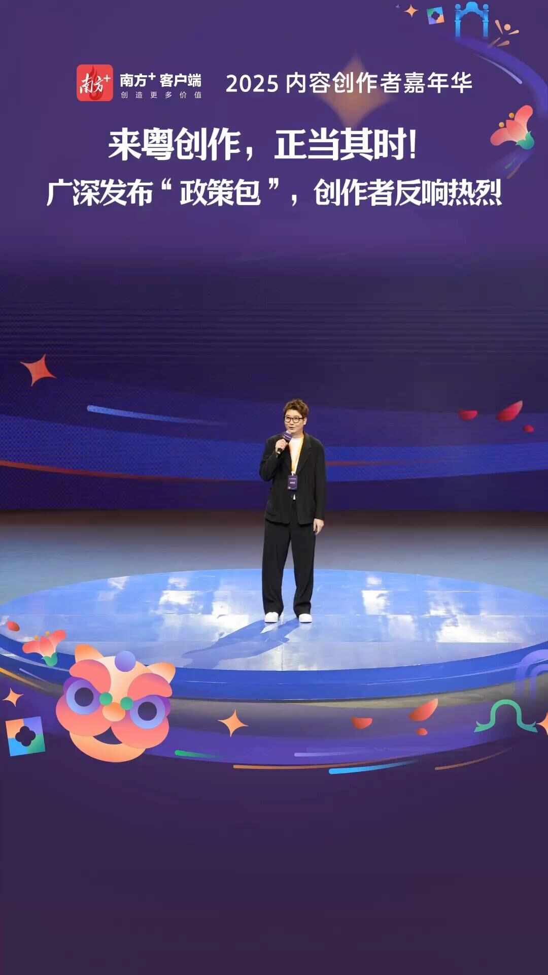 本次嘉年華匯聚了600多名全球優質創作者、MCN機構及主流媒體代表。在啟動儀式上,央視新聞、“意公子”“白菜GG”“Sir電影”“粵知一二”等優質創作者代表以“開放麥”的形式分享創作故事,從內容創作的視角,幽默、鮮活地分享各自不同領域的洞察與破圈經驗。
