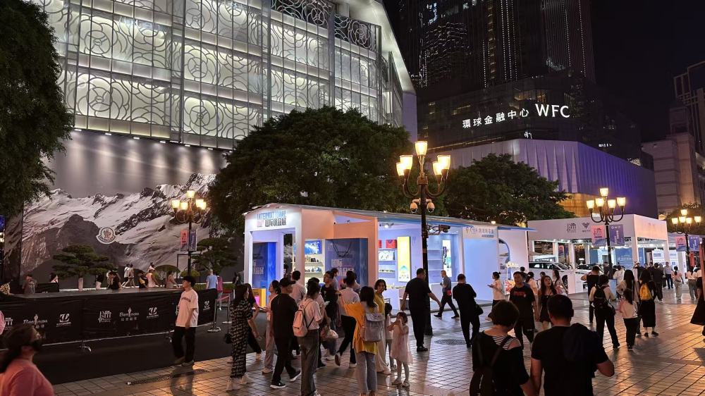 重慶解放碑商圈內,消費者在“國際優品展”選購。新華社記者 李曉婷 攝