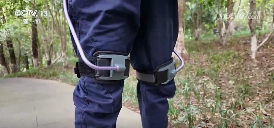 這套外骨骼機器人能夠提供拉力,帶動腿部運動,可以為登山人節省大約30%的體力消耗。