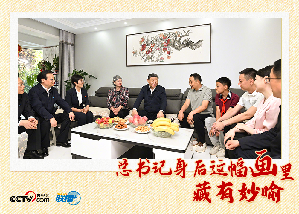 6月19日下午,習近平總書記來到寧夏銀川市金鳳區長城花園社區考察。在總書記看望的社區居民趙守成家里,客廳墻上掛著的一幅水墨畫格外顯眼。畫中,火紅的石榴結滿枝頭,呈現出一幅豐收景象。