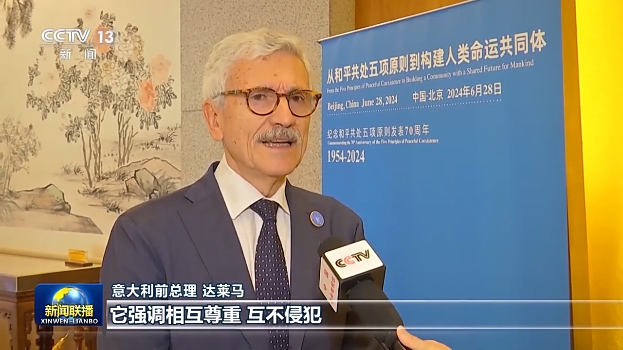 意大利前總理 達萊馬:我們生活的世界正在經歷一個非常困難的時期。一些殘酷的沖突正在發生。我認為五項原則仍然是和平的基石,它強調相互尊重、互不侵犯,特別是不同社會制度的國家應該和平共處。