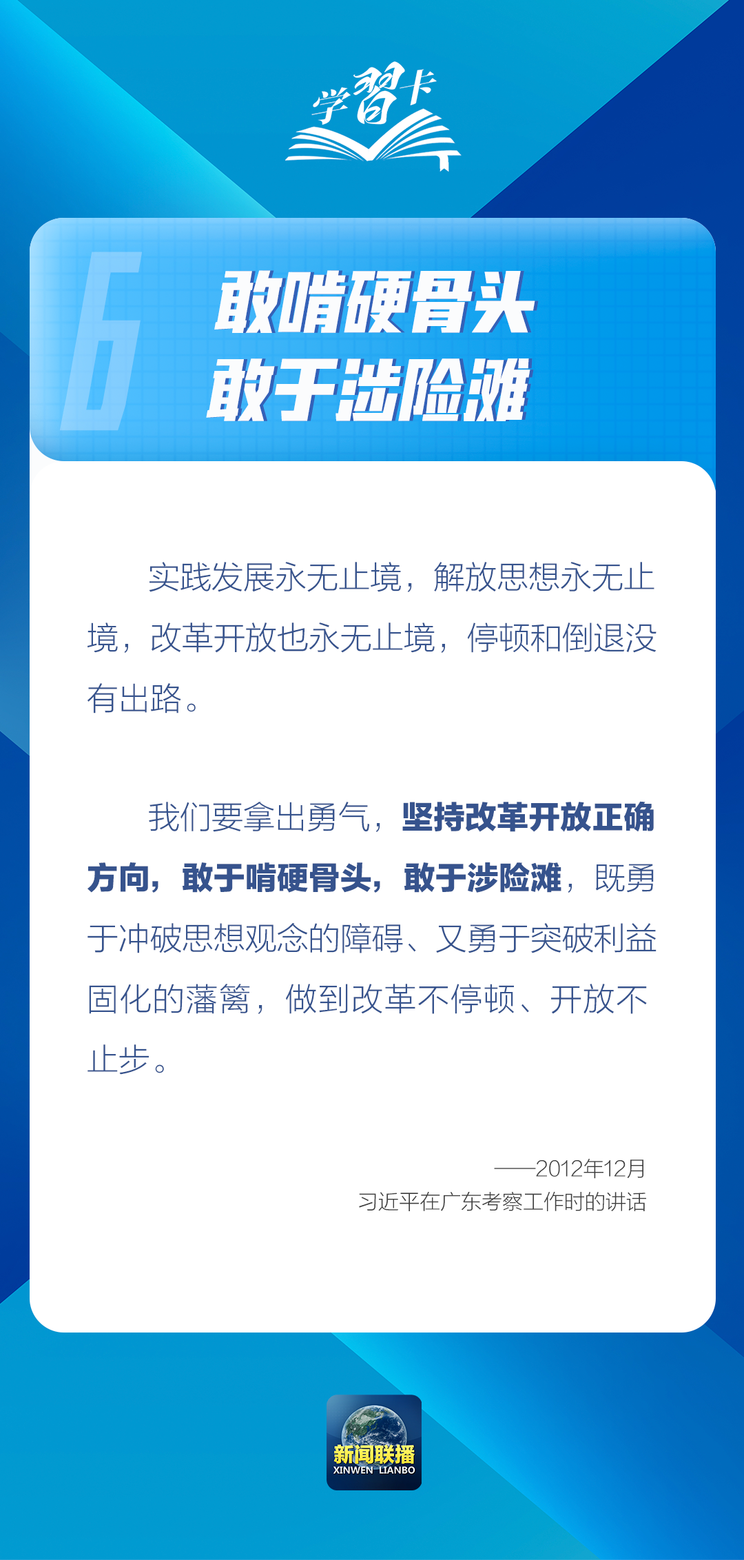 “改革開放是我們黨在新的時代條件下帶領人民進行的新的偉大革命,是當代中國最鮮明的特色,也是我們黨最鮮明的旗幟。”