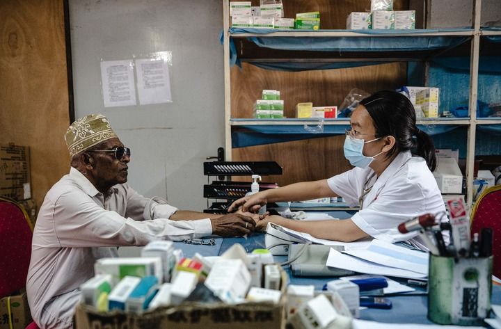 2024年1月11日,中國第15批援科摩羅醫療隊隊長潘春熹在位于科摩羅首都莫羅尼的馬魯夫醫院內為患者看病。新華社記者 王冠森 攝