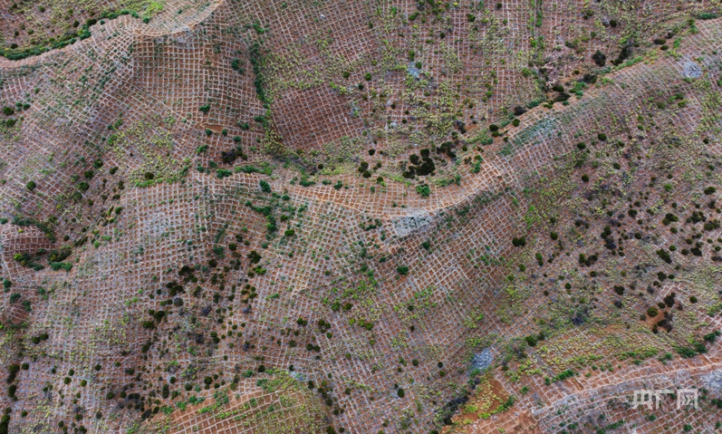 古浪縣壓沙用的草方格(央廣網記者 李紅軍 攝)