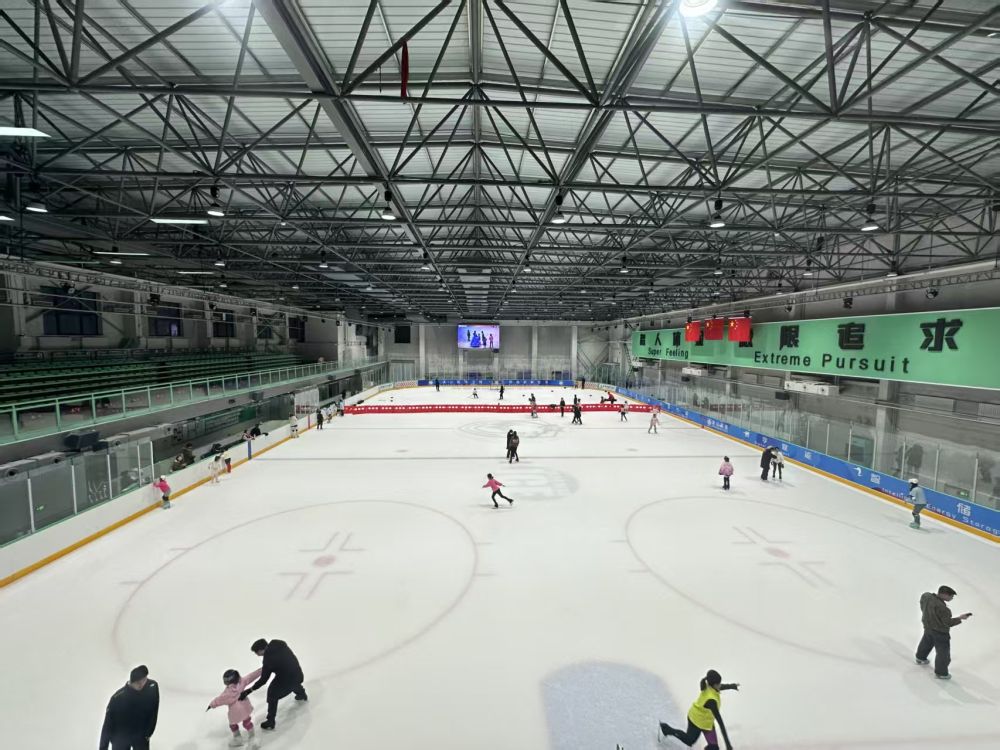 2025年1月,市民在大連冰熊冰上運動中心冰場運動。該冰場應用了大連冰山集團研制的制冰制冷控制系統。(孫濤 攝)