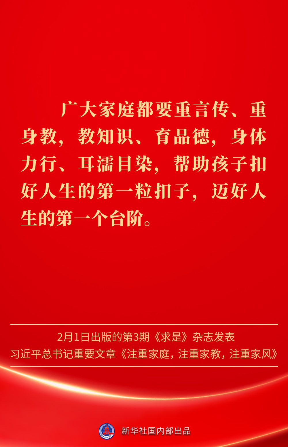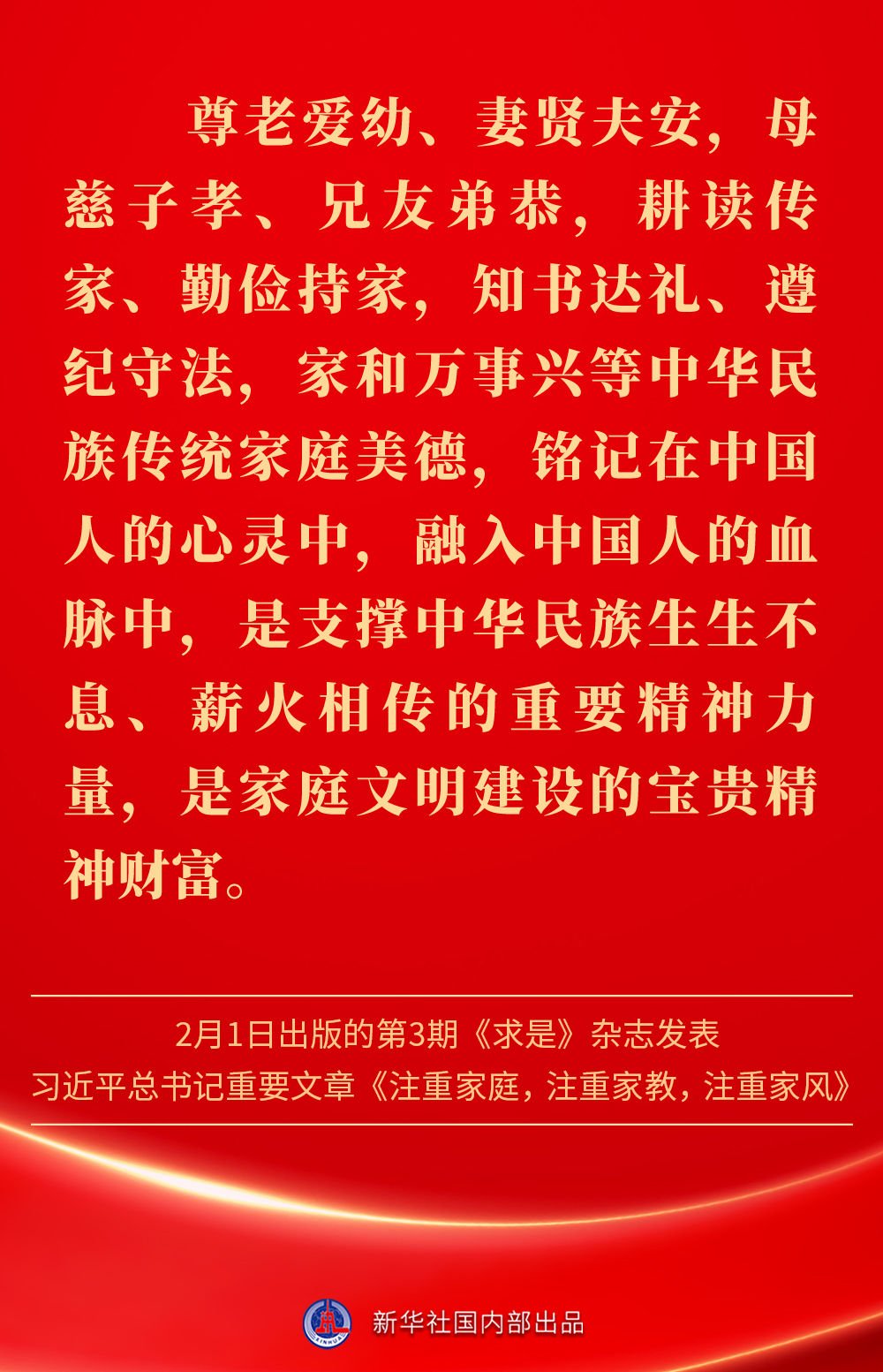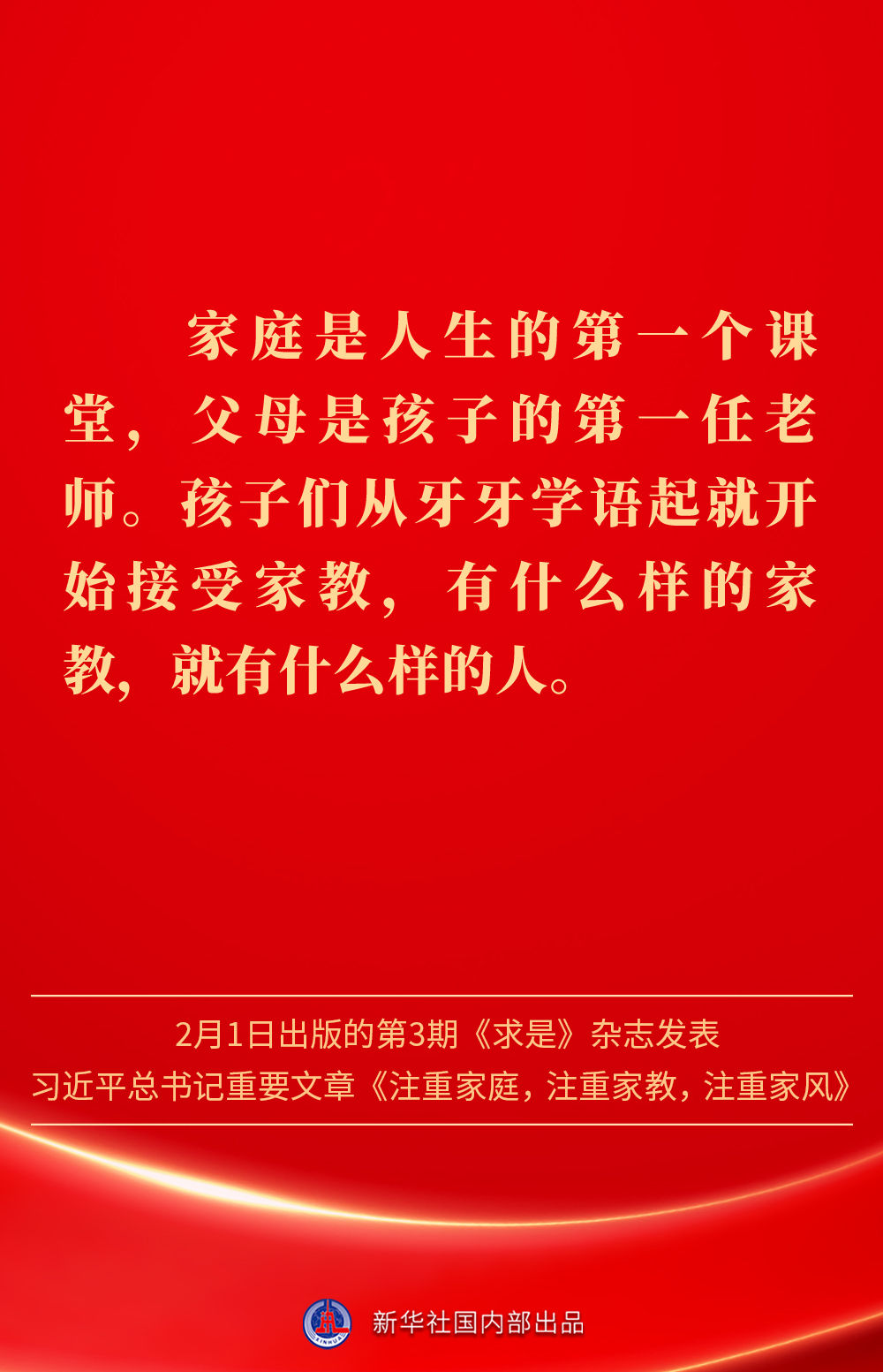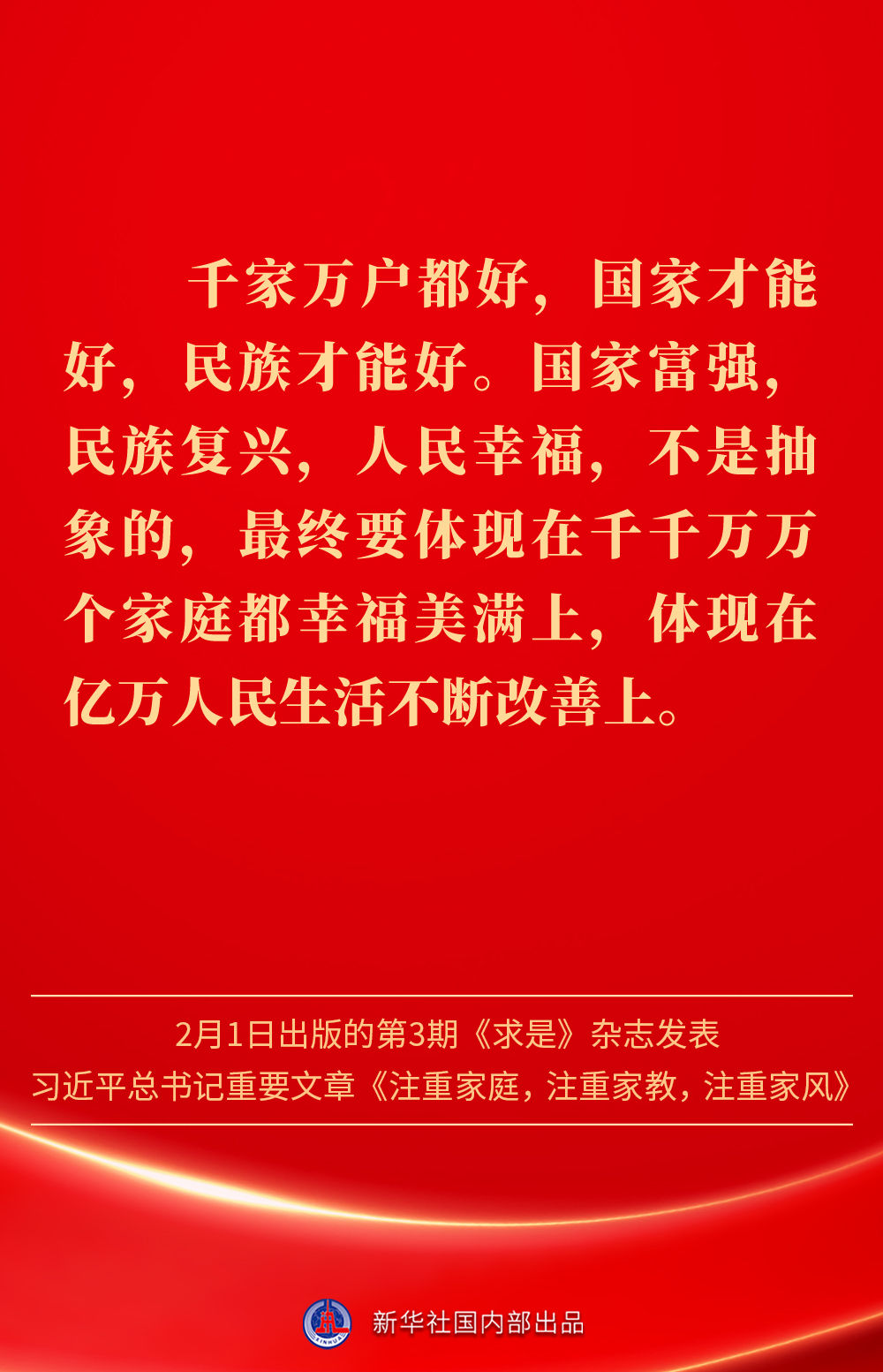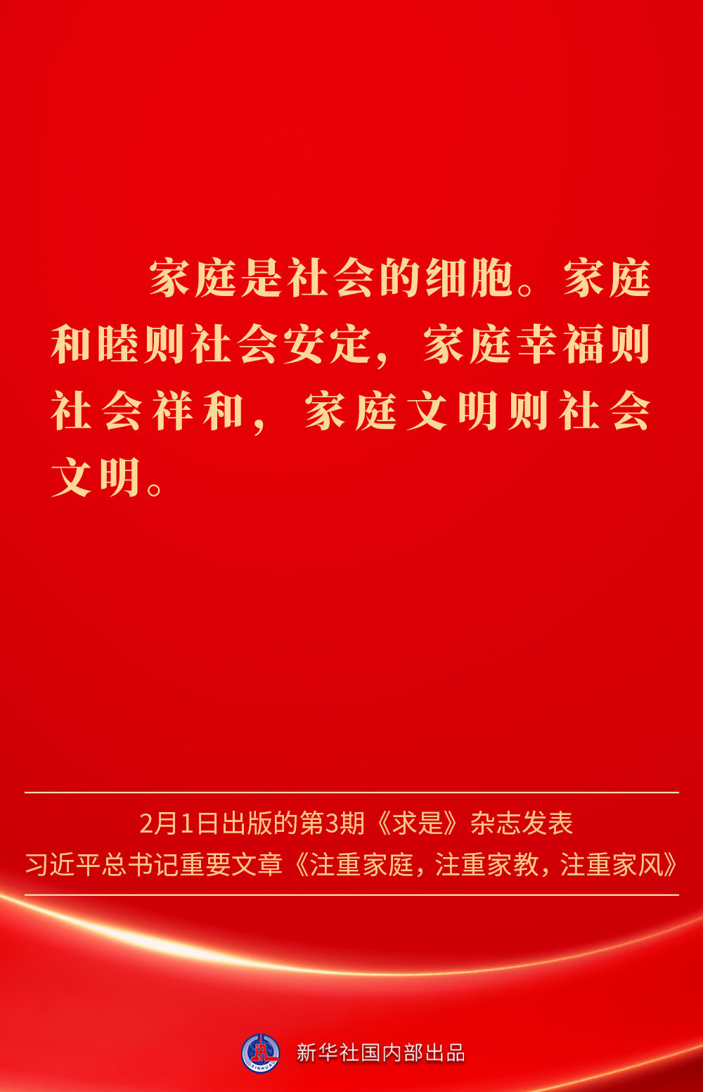 萬家團圓共慶新春佳節之際,2月1日出版的第3期《求是》雜志發表習近平總書記重要文章《注重家庭,注重家教,注重家風》。為什么要注重家庭、家教、家風?如何做好家庭文明建設?習近平總書記這樣闡述——