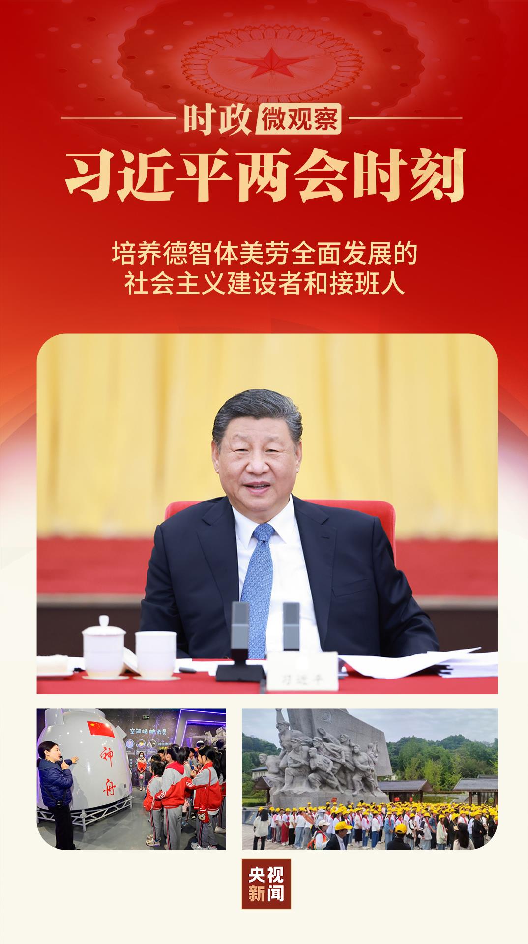 在3月6日的全國兩會政協聯組會上,習近平總書記站在為黨育人、為國育才的戰略高度,對如何培養德智體美勞全面發展的社會主義建設者和接班人,提出明確要求。