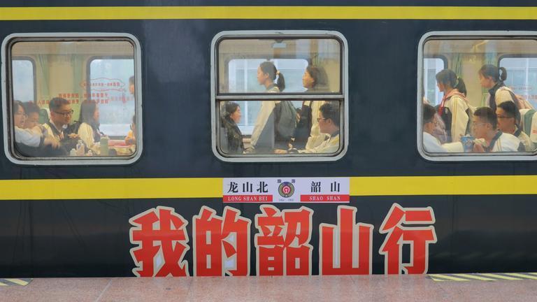 △湖南龍山縣青年學子乘坐紅色研學專列。
