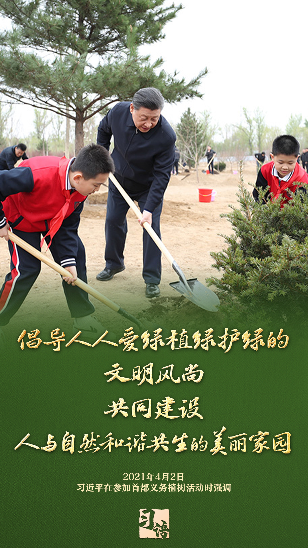 “植樹(shù)造林是一件很有意義的事情,是一項(xiàng)功在當(dāng)代、利在千秋的崇高事業(yè),要一以貫之、持續(xù)做下去。”自2013年以來(lái)的13個(gè)春天里,無(wú)論晴雨,習(xí)近平總書(shū)記都會(huì)拿起鐵鍬,與干部群眾一起參加首都義務(wù)植樹(shù)活動(dòng)。鏟土造坑、培土圍堰、提水澆灌,總書(shū)記身體力行種下綠色的希望,對(duì)擴(kuò)綠興綠護(hù)綠、建設(shè)美麗中國(guó)提出明確要求。一起學(xué)習(xí)。