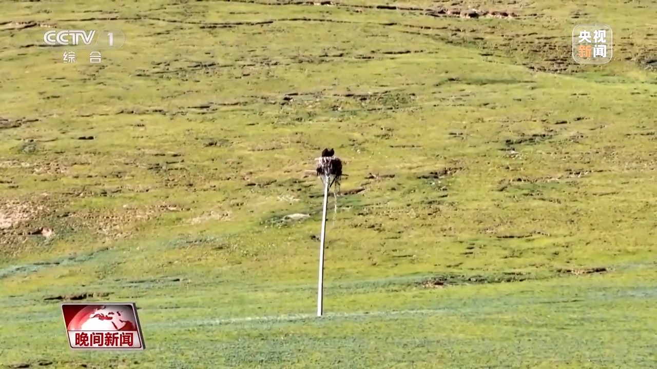 現在的三江源草原上,每隔一段距離就會有這樣一根孤零零的水泥桿。它有一個非常形象的名字,叫招鷹滅鼠架,老鷹在觀察臺上觀察目標,瞄準沖擊。這也是三江源國家公園保護草場,防治鼠害的一項有力措施。